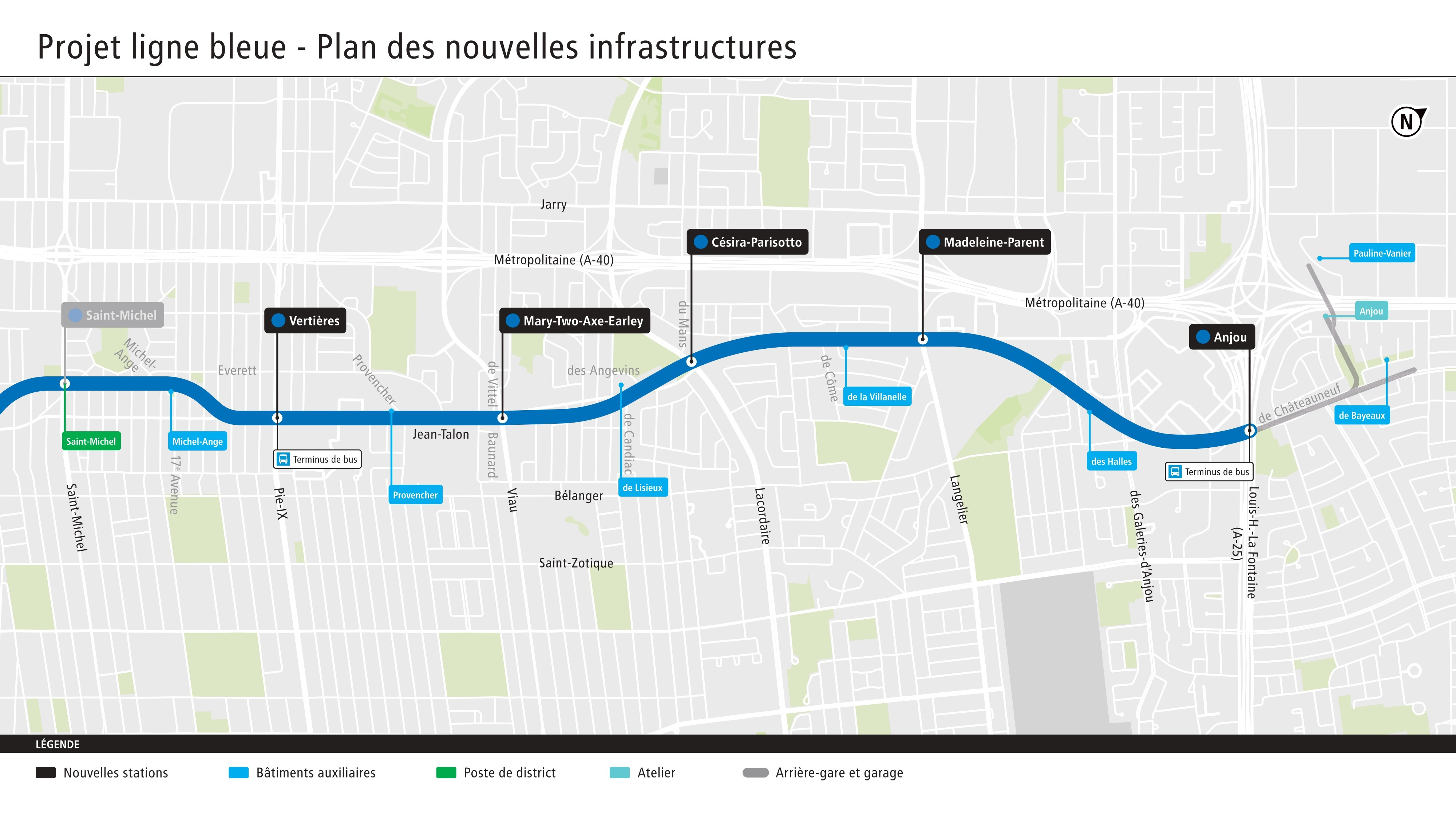 En septembre 2025, Montréal et la STM ont dévoilé les noms des cinq futures stations de la ligne bleue, affirmant leur volonté de célébrer la diversité et d’honorer des personnes et des communautés marquantes des quartiers concernés. L’annonce a rapidement divisé l’opinion publique entre ceux qui saluent ce renouveau toponymique et ceux qui regrettent l’abandon de la logique fondée sur la toponymie existante.